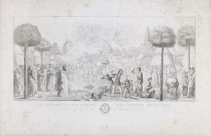 .s. XVIII.. GRABADO: .(BÍBLICO).. .2 GRABADOS DE TEMÁTICA BÍBLICA.. Conjunto de dos grabados de gran formato por C. Lasinio. Huella: 47 x 82 cm. LE TAVOLE DELLA LEGGE y PASSAGGIO DEL MAR ROSSO. Abundantes señales de óxido y cercos de humedad.