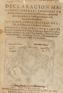.1615.. LIBRO: .(EMBLEMAS-NAJERA).. .LOPEZ, DIEGO:.. .DECLARACION MAGISTRAL SOBRE LAS EMBLEMAS DE ANDRES ALCIATO CON TODAS LAS HISTORIAS, ANTIGUEDADES, MORALIDAD Y DOCTRINA TOCANTE A LAS BUENAS COSTUMBRES.. Najera: Imp. Iuan de Mongaston, a costa del...