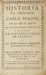 .(1666).. LIBRO: .(HISTORIA).. .HISTORIA DEL EMPERADOR CARLO MARGNO, en la que se trata de las grandes proezas.... Barcelona: Antonio Arroque, 1666 (extraída del prólogo). 8º menor. 4 h. + 241 p. + 3 h. Portada orlada. Cabeceras y capitales...
