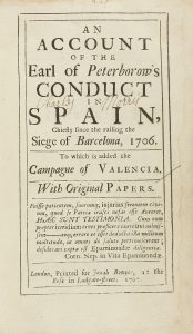 .1707.. LIBRO: .(BARCELONA-GUERRA DE SUCESIÓN).. .AN ACCOUNT OF THE EARL OF PETERBOROW´S CONDUCT IN SPAIN, CHIEFLY SINCE THE RAISING THE SIEGE OF BARCELONA, 1706.TO WHICH IS ADDED THE CAMPAGNE OF VALENCIA.. Londos: Imp. Jonah Bowyer, 1707. 8º. 4...