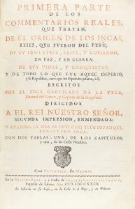 .1723.. LIBRO: .(HISTORIA).. .VEGA, GARCILASO DE LA [INCA GARCILASO DE LA INCA]:.. .PRIMERA PARTE DE LOS COMMENTARIOS REALES, QUE TRATAN, DE EL ORIGEN DE LOS INCAS REIES, QUE FUERON DEL PERU, DE SU IDOLATRIA, LEIES, Y GOVIERNO EN PAZ, Y EN GUERRA, DE...