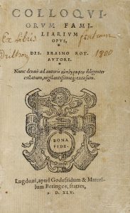 .1545.. LIBRO: .(HUMANIDADES).. .ROTTERDAM, ERASMO DE:. .COLLOQUIORUM FAMILIARIUM OPUS.... Lugduni: apud Godefridum & Marcelum Beringos, 1545. 12º. 793 p. + 1 h. Portada laminada con xilografía tipográfica. Capitales. Curiosas anotaciones...