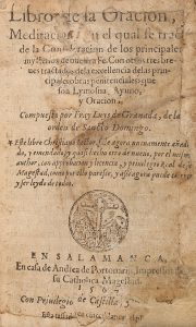.1567.. LIBRO: .(HUMANIDADES).. .GRANADA, FRAY LUYS DE:. .LIBRO DE LA ORACION, Y MEDITACION: EN EL QUAL SE TRAC[TA] DE LA CONSIDERACION DE LOS PRINCIPALES MYSTERIOS DE NUESTRA FE.... Salamanca: Imp. Andrea Portonariis, 1567. 12º. 8 h. + 525 fol. + 4...