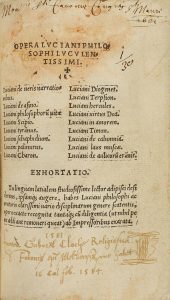 .1519.. LIBRO: .(POSTINCUNABLE).. .LUCIANUS:. .OPERA LUCIANI PHILOSOPHI LUCULENTISSIMI.. Lugduni: Guilhelmus huyon, 1519 en colofón. 125 fol. + 1h. Capitales xilografiadas. Tenue cerco en el primer fol. Antiguas Anotaciones manuscritas en los...
