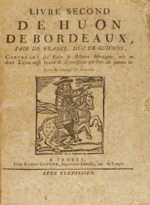 .1726.. LIBRO: .(CANTAR DE GESTA).. .LIVRE SECOND DE HUON DE BORDEAUX, pair de France, Duc de Guienne.... Troyes: Veuve Garnier, 1726 (en texto). 4º menor. 120 p. Portada con xilografía. Texto a dos columnas. Abundantes puntos de óxido, última p....