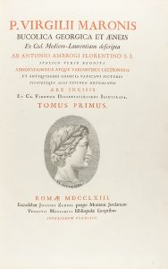 .1763-1765.. LIBRO: .(LITERATURA CLÁSICA).. .VIRGILIUS MARO:. .BUCOLICA GEORGICA ET AENEIS Ex-cod. Mediceo-Laurentiano descripta ab Antonio Ambrogi Florentino S. J. italico versu reddita adnotationibus atque variantibus lectionibus... 3 VOL.. Roma:...