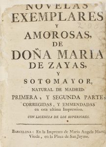 .[1764].. LIBRO: .(LITERATURA CASTELLANA).. .ZAYAS Y SOTOMAYOR, MARIA:. .NOVELAS EXEMPLARES Y AMOROSAS DE.... Barcelona: Imp. de Maria Angela Marti, 1764. 8º mayor. 3 h. + 536 p. Texto a dos columnas. Múltiples restauraciones y remarginaciones...