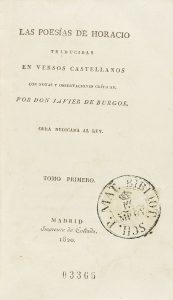 .1820.. LIBRO: .(LITERATURA CLÁSICA).. .HORACIO; BURGOS, JAVIER DE:. .LAS POPESÍAS DE HORACIO. Traducidas en versos castellanos con notas y observaciones críticas por DON JAVIER DE BURGOS.. Madrid: Imp. de Collado, 1820. 4 vol. en 8º. I: 1 h. +...