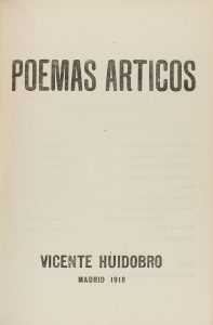 .1918.. LIBRO: .(GENERACIÓN 27-CREACIONISMO).. .HUIDOBRO, VICENTE:. .POEMAS ÁRTICOS.. Madrid: Imp. Pueyo, 1918. 8º mayor. 48 h. sin paginar. Libro dedicado a Juan Gris y Jacques Lipchitz. Temprana obra de Huidobro en la que se entreven las...