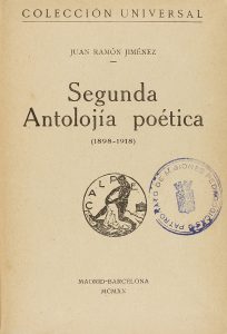 .1920.. LIBRO: .(LITERATURA).. .JIMÉNEZ, JUAN RAMÓN:. .SEGUNDA ANTOLOJÍA POÉTICA (1898-1918).. Madrid-Barcelona: Ed. Calpe, 1920. 8º menor. 356 p. + 2 h. Margen superior algo corto. Enc. en tela. Sello húmedo.