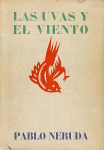 .1954.. LIBRO: .(LITERATURA).. .NERUDA, PABLO:. .LAS UVAS Y EL VIENTO.. Santiago de Chile: Nascimento, 1954. 4º mayor. 422 p. Intonso. Rústica original, algo sucia. Primera edición.