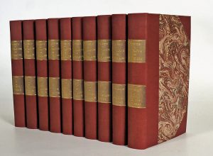 10 vol in-8° (dont 2 vol. de suppléments) (qqs-uns lég. brunis, pet. rouss.). Rel. moderne : demi-toile bordeaux à coins, plats de papier marbré, dos lisses avec étiq. de cuir, tr. jaspées de rouge, couv. cons. Ouvrage très souvent réimprimé (éd. orig. en 8 vol. : 1835-1844) par le professeur belge et historien de la musique Fétis (1784-1871), directeur du Conservatoire royal de Bruxelles de 1833 à 1871.