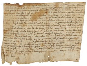 .1192.. MANUSCRITO: .(VALLES-CORRO DE DALT).. .ARNAU SERRA Y SU MUJER GILIA HACEN DONACIÓN DE UN CAMPO SITUADO EN LA PARROQUIA DE CORRO DE DALT A SU HIJA BERENGUERA.. Manuscrito sobre pergamino. 11 X 14 ,5 cm.
