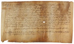. Manuscrito sobre pergamino, 27 x 15 cm. Dado en Olost, 13 de diciembre de 1349.