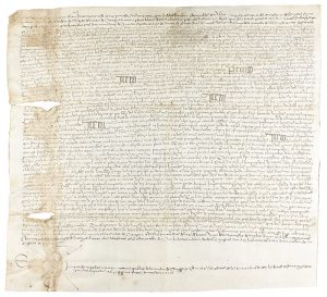 1478. Referente a la tributación del huerto de la parroquia de San Gil. El segundo pergamino 42 x 65 cm, también dado en Zaragoza ante el notario Miguel de Villanueva el 14 de febrero de 1506. Referente a la bendición del huerto de la misma parroquia de San Gil de Zaragoza y la huerta de santa Engracia. Interesante conjunto con la cabrebación de los frutos de la huerta trabajada por una comunidad religiosa.