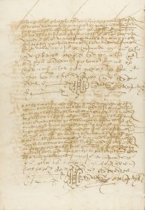 .1514.. MANUSCRITO: .(PERGAMINO-VENTA).. .VENTA DE UNA CASA A FAVOR DEL PATRONATO DE S. LAURENCIO EN LA CASA EN LA PLAÇUELA DE DICHA PARROQUIA.. 2 h. blanco + 4 h. Papel verjurado con filigrana, escrito en recto y verso. Con firma notarial. Enc. en...