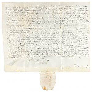 pergamino de 28 x 42,5 cm, firmado ante notario, y dado en 1661, al parecer es un reconocimiento de deuda.