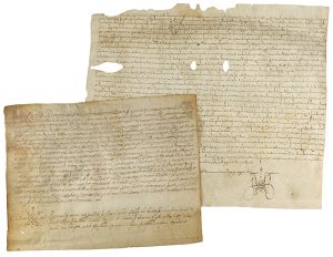 de tierra boscosa situada en Bescanó. El segundo de 25 x 18 cm dado el 25 de septiembre de 1641 en Mata ante el notario público Damià Conques, de Sant Esteve de Banyoles. Presenta dos agujeritos con leve pérdida de texto. El último dado ante el notario Ramon Garau de Girona, el 6 de mayo de 1646, de 18 x 24 cm. Se trata de una dote matrimonial a favor de Jerónima Batlle.