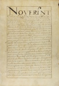 .1644 y 1666.. MANUSCRITO: .AMELA, FRANCISCUS:. .NOVERINT UNIVERSI [QUE] NOS FRANCISCUS AMELA CIVIS ET CHRISOGONUS ALMELA ETIAM CIVIS ILLIUS FILIUS VIVIT[ATES].... Manuscrito sobre cuaderno de vitela en 4º mayor. 16 h., todas con el texto enmarcado...