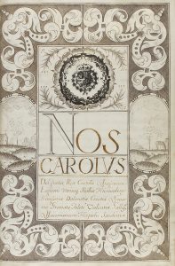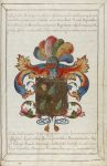 xilografiada, a modo introductorio se contextualiza los títulos y servicios a la Corona de D. Joseph Pujades y sus antecesores. [Más:] 1 h. manuscrita en latín, en recto y verso también en papel verjurado, encabezado con un sello húmedo de 1685 (Carlos II) y firma estampillada ´yo el Rey´ donde se otorga el privilegio real de caballero. [Más:] una h. de papel en blanco + 4 h. en vitela, manuscritas en recto y verso, portada ilustr. a mano con una orla y un sello húmedo; texto enmarcado escrito en latín e ilustr. con un bello escudo iluminado, rematado con un yelmo; firma estampillada ´Yo el Rey´. [Más:] 5 h. en blanco de papel verjurado, una con restos de cinta adhesiva. Enc. en pleno pergamino de época con el plano anterior rotulado. Sello de lacre fragmentado pero mayormente completo. Firmas notariales.