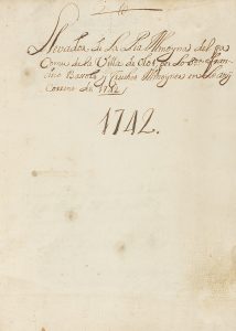 mensuales. Enc. en pergamino de época en forma de cartera con cierre de badana. Corresponde a las cuentas del año 1742 y todo manuscito de la misma mano.