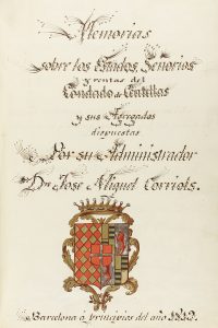 .1820.. MANUSCRITO: .(CENTELLES).. .CORRIOLS, JOSÉ MIQUEL:. .COPIA MANUSCRITA DE LAS MEMORIAS SOBRE LOS ESTADOS SEÑORIOS Y RENTAS DEL CONDADO DE CENTELLAS Y SUS AGREGADOS DISPUESTO POR SU ADMINISTRADOR.... Centelles, 1820. Folio. 4 h. + 169 p. + 3...