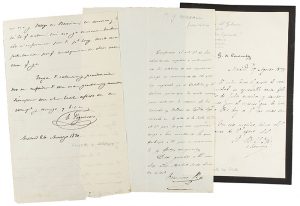 regresado de sus viajes por Catalunya i Andalucía para la escritura de sus ´Recuerdos y Bellezas de España´. La segunda fechada en Madrid el 26 de marzo de 1870 y firmada por Estanislao Figueras. Ambos fueron presidentes durante la primera república. La última carta del lote lleva borde negro y va firmada por Salmerón y redactada en papel con membrete de Presidencia del Gobierno de la República Española, pues durante la presidencia de Pi i Margall él fue el presidente ejecutivo.