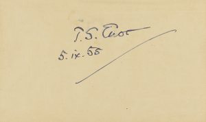 .1929-2000 ca.. MANUSCRITO: .(AUTÓGRAFOS).. .CARPETA CON 16 AUTÓGRAFOS DE CIENTÍFICOS, LITERATOS.... Conjunto de 16 tarjetas con dedicatórias autógrafas de eruditos, 8 de ellas premios novel, como por ejemplo T. S. Eliot, Principe Louis V. de...