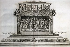 et indicibus convenientibus. Accessit etiam praefatio Jo. Schilteri. Argentorati [Strasbourg], apud Joh. Reinholdum Dulsseckerum, 1702. 4 parties en 1 vol. in-f°; frontispice et 16 h.-t. (texte n.c., pp. +/- brunies -certaines fortement-, rouss., qqs perforations marginales). Rel. du 19e s. : demi-veau prune, plats de papier marbré, dos lisse avec roul. fleuronnées et filets dorés, tr. jaspées de brun (dos passé, coupes et coins lég. émoussés, gardes renouvelées, étiq. et pet. note ms. au contreplat sup.). Rarissime ouvrage n'étant plus passé en vente depuis 25 ans. Collection de chroniques, d'annales et de documents (éd. orig. : 1600) retragant l'histoire du Saint-Empire depuis Charlemagne (742-814) jusqu'à Frédéric III (1415-1493). Illustré d'un frontispice allégorique figurant Charlemagne et Frédéric III avec ses armoiries surmontées de l'aigle du Saint- Empire,- de planches sur simples pages ou dépliantes représentant des sépultures, des sceaux et des monnaies,- de quelques in texto et d'une vignette sur le titre. Avec une préface du jurisconsulte et historien allemand Johann Schilter (1632-1705). # pas dans Brunet. Provenance : Dampierre, i.e. château des ducs de Luynes (ex-libris armorié).