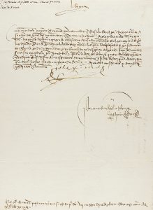 confirma la venta hecha por su tesorero, Alonso Morales, al prior de Xerez, en la villa de Coruña, de siete custodias de plata con sus cruces procesionales. En ese momento la reina está reuniendo fondos para afrontar las compensaciones de desagravio por la afrenta cometida por el gobernador de Bobadilla en la persona de Colón, que estaba a punto de embarcarse por cuarta vez hacia el nuevo mundo.