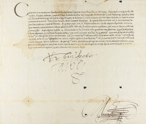 .1524.. MANUSCRITO: .(FIRMA REAL AUTÓGRAFA).. .DOCUMENTO FIRMADO POR CARLOS I DE ESPAÑA Y V DE ALEMANIA ´CAROL´.. Manusrito sobre papel. Se trata de una carta dirigida a su cuñado Ludovico II, rey de Hungría y Bohemia y casado con su hermana...