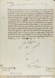 .1560.. MANUSCRITO: .(FIRMA REAL AUTÓGRAFA).. .DOCUMENTO CON LA FIRMA DE FELIPE II, ´YO EL REY´.. Manuscrito sobre folio de papel. Carta dirigida Mossen Antonio Celdran, escribano de ración, para que asiente en carta de ración y libros de su...