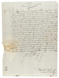 .1620.. MANUSCRITO: .(FIRMA REAL AUTÓGRAFA).. .FIRMA REAL DE FELIPE III ´YO EL REY´.. Manuscrito sobre papel. Carta dada en Valladolid el 20 de marzo y dirigida a la villa de Luque en la que se ordena y recuerda la obligación de servir con armas...