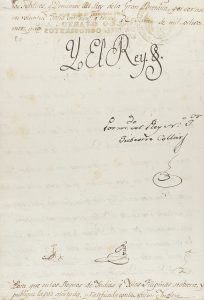 la noticia llegue a los reinos de Indias, Islas Filipinas y se observe y publique la paz ajustada con la nación de Inglaterra. Firmada por el monarca ´yo el Rey´, en Aranjuez el 13 de junio de 1802. En la otra hoja del pliego consta una nota manuscrita firmada por Luis Muñoz de Guzman, gobernador de Chile. Esa nota constata la recepción de la carta en Santiago de Chile en noviembre de 1802. Muy interesante.