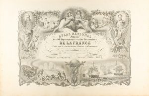 (mapa mundi y Francia). De los mapas, 12 corresponden a las colonias francesas y a los continentes. Todos los mapas están decorados con vistas y personajes, contienen datos estadísticos del departamento o comuna al que hacen referencia. Los dos mapas plegados son a color y el resto parcialmente coloreados. Enc. en media piel, puntas y lomera rozadas. Agún punto de óxido.