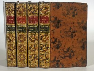 encore été publiées. à Amsterdam, et se débite à Lausanne, Frangois Grasset, 1770. 4 vol. in-12° : [4]-civ-412, [4]-xvi-488, [4]-xiv-475, [2]-iv-422 pp. (rouss., pet. taches, qqs piqures, qqs pp. lég. brunies, perforation avec manque à la p. 355 du vol. I). Rel. de l'époque : plein veau marbré, dos lisses fleuronnés dorés, tr. rouges. L'ouvrage, commencé en 1743 (éd. orig. : 1748) et résultat d'une vingtaine d'années de réflexion, est divisé en 31 livres. Il tente de saisir "l'esprit" des lois en analysant, dans un déterminisme indéfectible, les différentes formes de gouvernements, les impöts, l'économie, la démographie, la religion, l'histoire du droit en France... et les lois en rapport avec la nature du climat, sujet qui fut des plus controversés et qui fut prétexte à l'étude des gouvernements de différentes nations à diverses époques. Tout en marquant un certain conservatisme, Montesquieu prone une monarchie de type libéral constitutionnel, avec séparation des pouvoirs comme garant de la liberté des individus, à l'exemple de l'Angleterre. L'ouvrage eut un retentissement important, appela les foudres de l'église et influenga les philosophes des Lumières. Montesquieu fut souvent invoqué comme "Père fondateur" de nations modernes (comme en Amérique en 1787). # PMM 197; # pas dans Tchémerzine, Cioranescu, Brunet, Graesse.