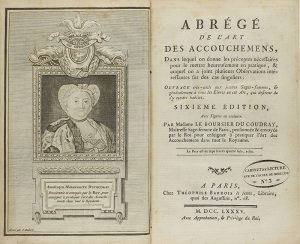 grabado por J. Robert y lám. calcográficas de Chapparre, iluminados a mano. Mdme. Coudray fue nombrada por Luis XV comadrona oficial de Francia, viajó por todo el país difundiendo sus conocimientos. Llegó a ser la primera comadrona en impartir clases de parto en público, incluso en idear un maniquí para practicar con los estudiantes. Enc. en pasta española, lomera con pérdida, cajo sesgado y puntas rozadas. Leves puntos de óxido. Sello húmedo. BNF 30762038.