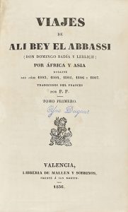 .1836.. LIBRO: .(VIAJES).. .VIAJES DE ALI BEY EL ABBASSI (DON DOMINGO BADIA Y LEBLICH) POR AFRICA Y ASIA DURANTE LOS AÑOS 1803, 1804, 1805, 1806 Y 1807.. Valencia: Libr. de Mallen y Sobrinos, 1836. 3 vol. en 8º. I: XXXVI p. + Retrato + 339 p. II:...