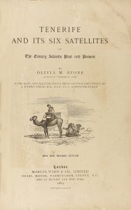 .1889.. LIBRO: .(VIAJES).. .STONE, OLIVIA M.:. .TENERIFE AND ITS SIX SATELLITES OR.... London: Marcus Ward & Co., 1889. 4º. Retrato + VIII + 506 p. + 4 h. Ilustr. con mapas de las islas, e ilustr. en el texto. Uno de los mapas con una pequeña falta...