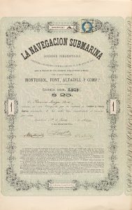 .1864.. ACCIÓN: .(ACCIONES-NAVAL).. .2 ACCIONES DE LA NAVEGACION SUBMARINA, SOCIEDAD DE COMANDITARIA.... Barcelona: Imp. de Ramirez, 15 de julio de 1864. 2 pliegos de dos h. ´... constituida con escritura pública otorgada en 22 de mayo de 1864,...