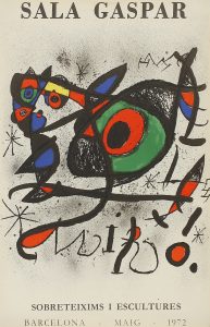 .1972.. CARTEL: .(ARTE-MIRÓ).. .MIRÓ, JOAN:. .SOBRETEIXIMS I ESCULTURES. SALA GASPAR. Barcelona: Maig 1972.. Cromolitografía. 84,5 x 56,5 cm (33 x 22 in). A-.
