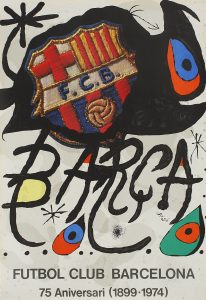 .1974.. CARTEL: .(ARTE-MIRÓ).. .MIRÓ, JOAN:. .FUTBOL CLUB BARCELONA. 75 ANIVERSARI.. Barcelona: La Polígrafa, 1974. Cromolitografía. 1974. 69 x 100 cm (39,5 x 27 in). A-.