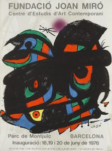 .1976.. CARTEL: .(ARTE-MIRÓ).. .MIRÓ, JOAN:.. .FUNDACIÓ JOAN MIRÓ. Centre d´Estudis Contemporanis. Barcelona 18, 19 i 20 de Juny.. Barcelona: Polígrafa, 1976. Cromolitografía de 70 x 50 cm (27,5 x 19,5 in). A-.