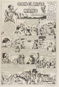 .1946.. ORIGINAL ARTÍSTICO: .(CÓMIC).. .BUIGAS:. .TBO S.. Arte Original de José R. Aroca para la portada del cuaderno Nº 27, ´Con el rifle en la mano´. Gran tamaño 43 x 29 cm. Buen estado.