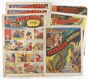 . 12 cuadernos, la mayoría de ellos de años 40 y de gran formato, compuestos por: Aventuras Fantásticas (2), Colección Audaz, Tarzán (Serie la Selva, 2), Jinete Enmascarado (2), Diamante Negro y...