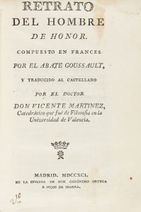 HONOR... Id: Oficina Gerónimo Ortega e hijos de Ibarra, 1791. Id 2 h. + 215 p. Algún punto de óxido. 2 vol. enc. en pergamino de época, lomeras rotuladas; una de ellas semidescosida.
