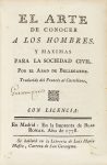 .1778.. LIBRO: .(CONJUNTO-HUMANIDADES).. .EL ARTE DE CONOCER A LOS HOMBRES y maximas para la Sociedad civil por.... Madrid: Imp. de Blas Roman, 1778. 8º menor. 7 h. + 334 p. 1 hoja rasgada sin pérdida, falta S2. [Más:] RETRATO DEL HOMBRE DE...