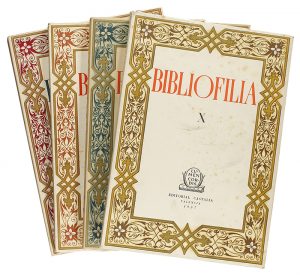 DECORACIÓN EXTERIOR DE LOS LIBROS. .Barcelona: Casa Miquel-Rius, 1913. 23 p. + XXI lám. [Más:]. BIBLIOFILIA. .VOL. VII, VIII, IX i X (1953-1957). Valencia: Ed. Castalia, 1953-1957. 4 vol. en 4º mayor. Más de 100 p. c. u. En rústica, dos de los vol. con puntos de óxido en el plano anterior.