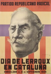.1935.. CARTEL: .(GUERRA CIVIL Y REPÚBLICA).. .[MANLIUNY]:. .PARTIDO REPUBLICANO RADICAL DIA DE LERROUX EN CATALUÑA.. Litografía. 100 x 68,5 cm (39,2 x 27 in). Entelado, leves señales de doblez, A-.