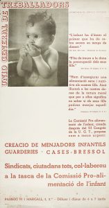 .1938 ca.. CARTEL: .(GUERRA CIVIL).. .UNIÓ GENERAL DE TRABALLADORS.. Cartel 30 x 56 cm (11,7 x 22 in). Pro-alimentació de l´infant. Ofsset B+.